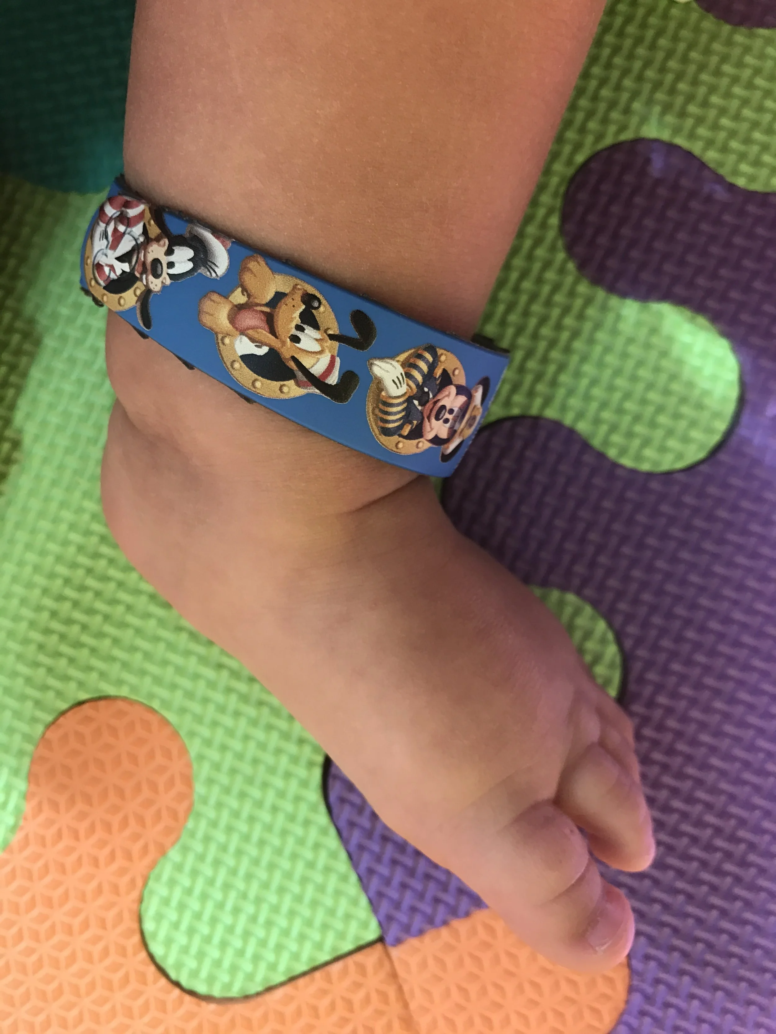 After a cat nap and a mandatory lifeboat drill the Disney Dream set sail and we headed down to It's A Small World Nursery to register Malie. The nursery is for children ages 6 months - 3 years old. The cost is $9 per hour. After filling out some paper work each child is given a little magic band. This did cost $12.95 but that cost is refunded if you return the band at the end of your cruise; we decided to keep ours as a souvenir of her first cruise.